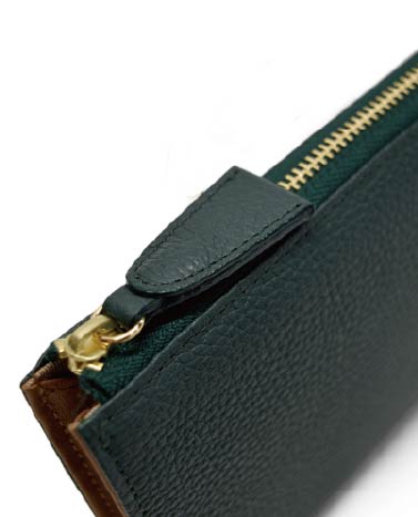 マチ付きファスナーで、開きが良く収納力もある長財布。