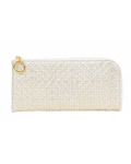 触り心地がソフトなイタリアのメッシュ型押し革。織物をイメージして作られた立体感のある細やかな模様になっています。マチなしでスリムなLファスナー。お札も左右に分けて見えない様に収納できるのが便利です。