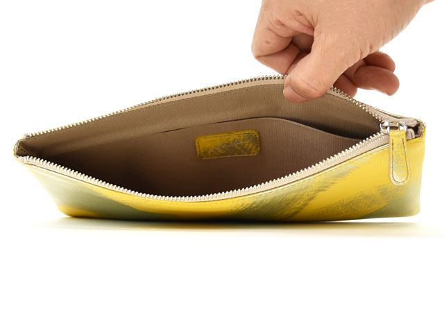 ソフトでタッチ感の良い国産レザーに大胆で勢いのある刷毛使いのハンドペイントをのせたシリーズ。上下左右に自在に描かれた模様は職人の息吹を感じます。
